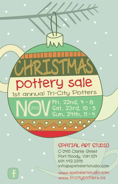 She sells her cheerfully coloured work there, gives lessons and operates workshop time for the public. Recently she suggested that she and her husband could open the shop for a group Christmas Sale for members of TriCity Potters. It’s a great location, a block away from Port Moody Arts Centre, and right around the corner from Joye Designs Jewellery store (Joye is holding a ‘Black Friday’ sale the same weekend).
