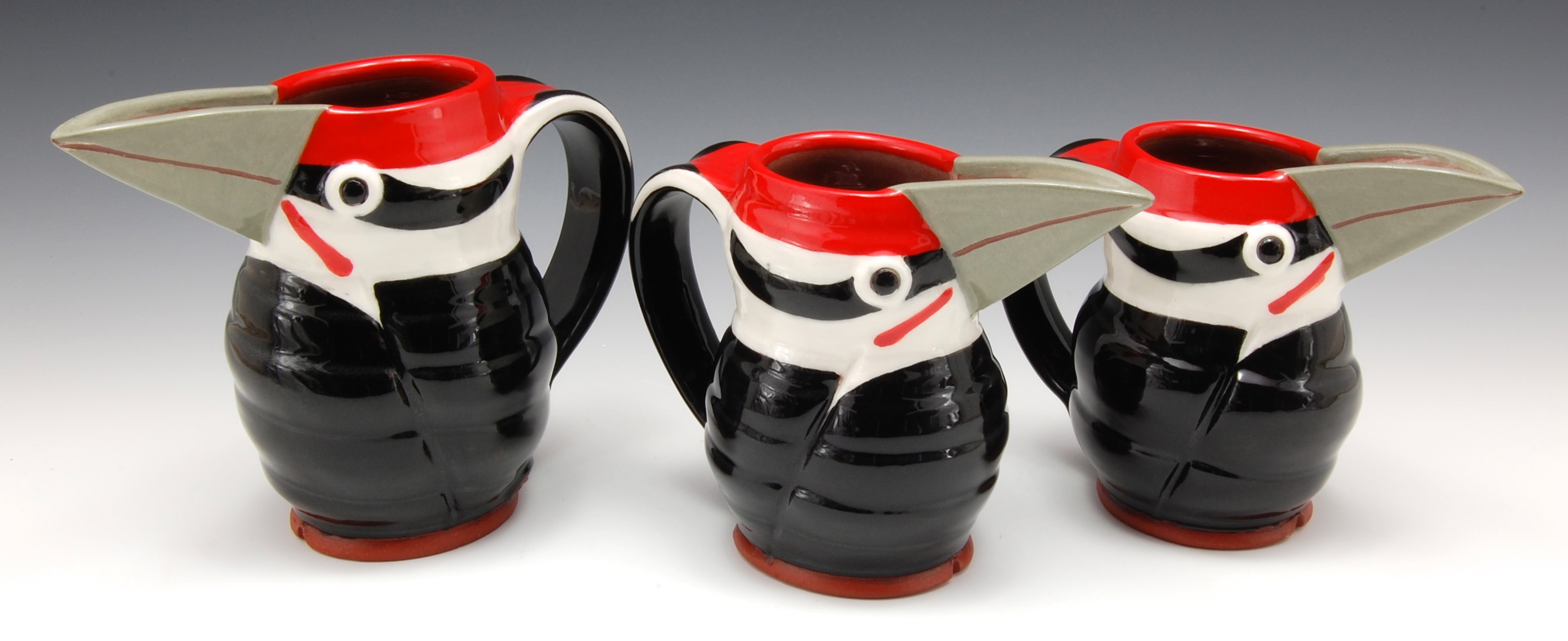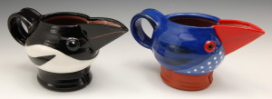 My jugbirds are my standard size and designs, photographed many times, but always slightly different. I’ll choose 12 assorted from these and three others already fired – an eagle, a robin and a green job and take them out to YVR tomorrow.