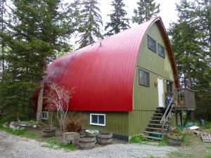 When Joan and Reg finally moved to work in Williams Lake later in the seventies they built this house in the country. Joan’s thrilled with their cheery new red roof!
