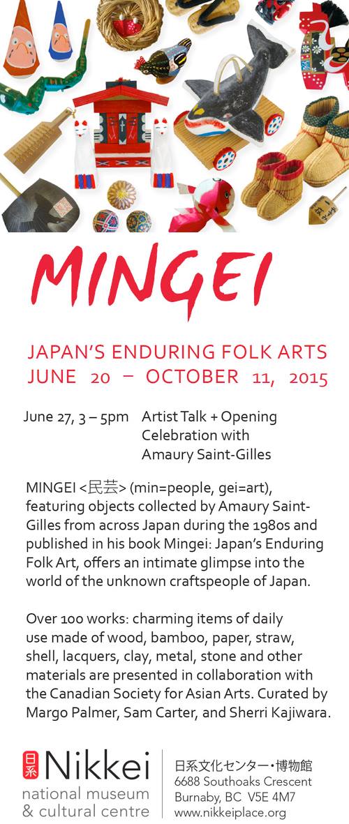 11406716_10155632949380576_5298224013498007415_o When I received this invitation via Facebook from Sam Carter, Emeritus Professor at Emily Carr U I imagined that ‘Mingei’ would feature lots of fine ceramics as well as other ‘folk art’ from Japan.