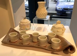 When I was in Circle Craft Co-op last Wednesday I saw that Friederike Rahn had just finished setting up a display of work by those Shadbolt Centre instructors and staff who have fired their work in the wood and soda kilns there.