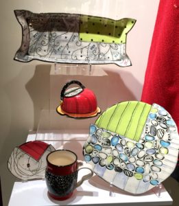In the adjacent window of Circle Craft I was happy to see the jolly colours of Laura van der Linde’s pottery.