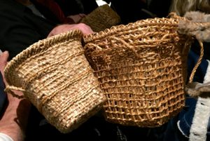 Many years later Dale was delighted to meet Ed Carriere, a Suquamish elder from Puget Sound, who was making baskets and teaching others. Dale talked to him about the ancient baskets from a number of archaeological sites that they’d rescued from the mud and Ed expressed interest in seeing them and learning how they had been made.