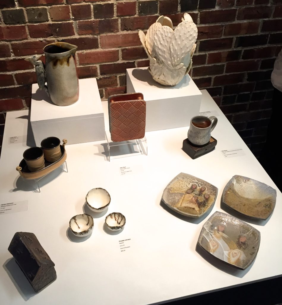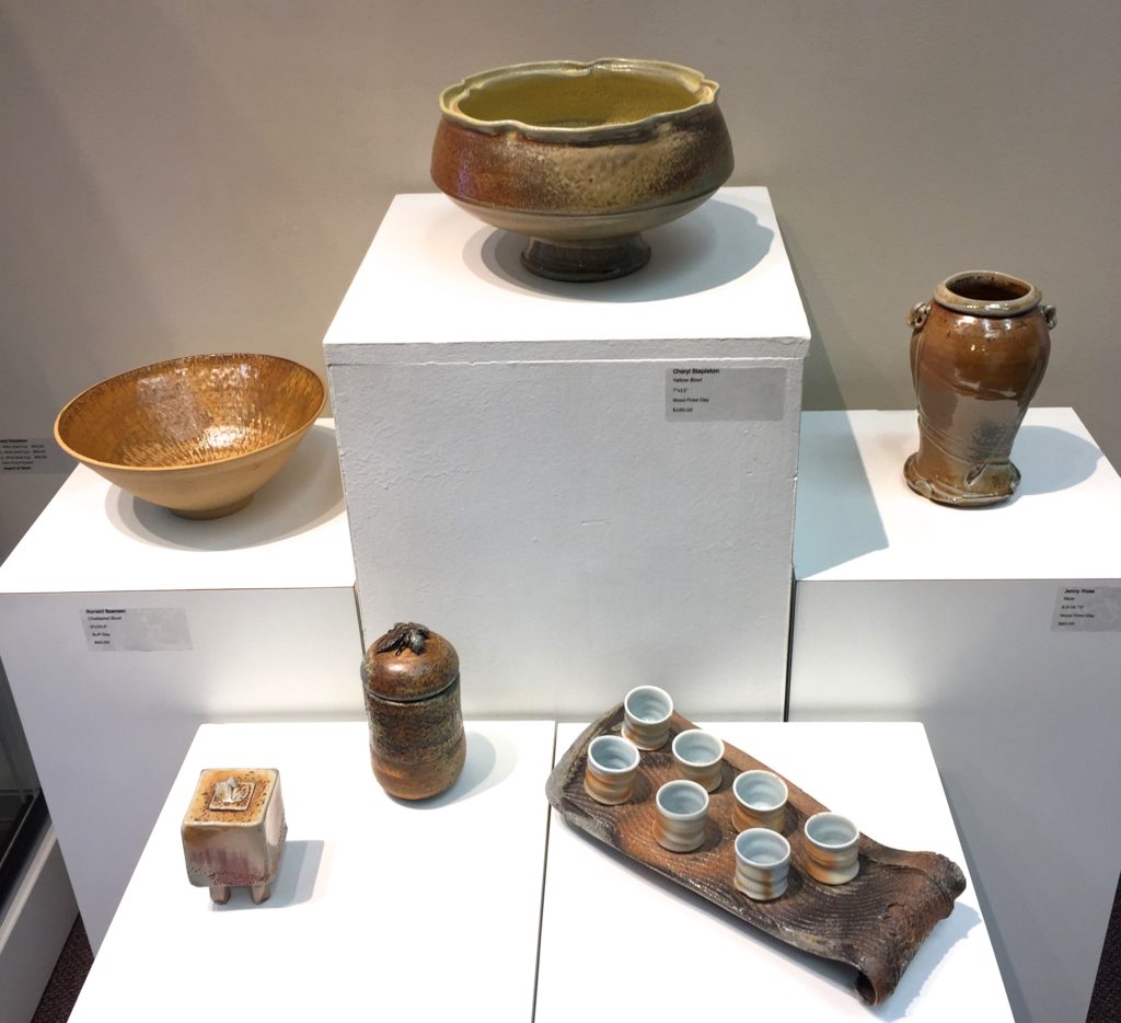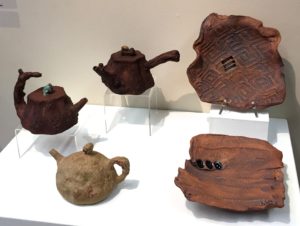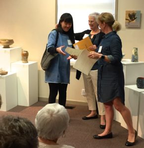 As a very long-time but now lapsed member of that guild I was looking forward to seeing the latest work from current members and connecting with many friends. Several local potters, Eliza Wang, Kay Bonathan, Carlene Akester, Clive Tucker, Laura Giesbrecht and Ronald Boersen, belong to FVPG and to TriCity Potters (have I missed anyone?) and have pieces in this show. Fraser Valley Potters Guild have their monthly meetings at Kwantlen University in South Surrey and are enjoying close ties with Kwantlen’s Ceramics instructor Ying-Yueh Chuang. She encourages her students to take part in FVPG activities and several of her students received awards in the student category this year.