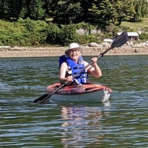 On our final day the fine weather held and it was decided that the kayaks should be taken down to our beach. Bucket list thing for me.. I’ve never kayaked so I was fitted with a life preserver and helped into a very stable, not-really-kayak, and shown how to paddle. Jen and Caleb joined me in their separate kayaks and we delighted in a gentle voyage along the shore, looking at rocks, driftwood, dense forest, loons, one or two vessels in the far distance and totally calm, if cold, water. Couldn’t have been better! Mike and Lucas each paddled out later and Jen took Bennett along on hers for a long ride.