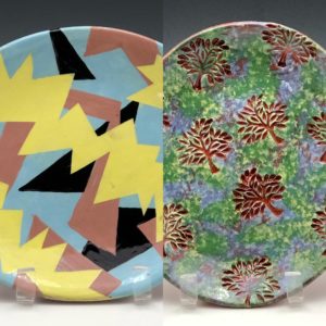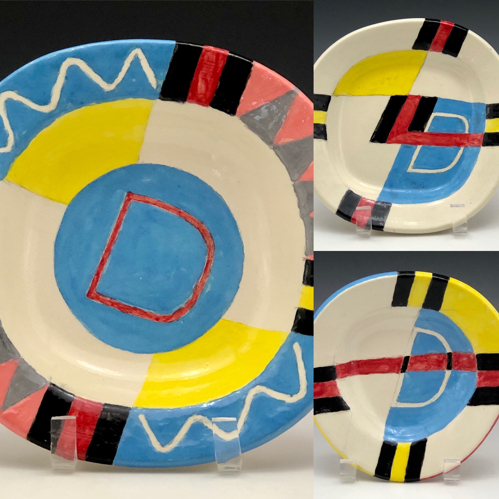 Eric Metcalfe was pleased to have another chance to draw and paint on plates to relieve the current Covid loneliness. His three have a D theme which may refer to his questionable grades in school compared to his recent honorary Arts doctorate from his Alma Mater, the University of Victoria. Congratulations Eric! I intend to start making more white earthenware plates for a possible small re-start of Artist ‘Raids’ in the coming months.