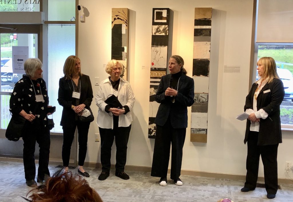 The four artists, shown above as Gallery manager Janice Cotter introduced them, met at a paper-specific workshop some years ago. They have kept in touch and have made a selection of related works for this show. Luckily for me, I have known three of the four for a very long time so was pleased to see what they have been making. It turns out that they have all worked with clay at some point!