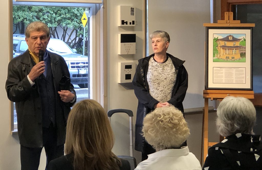 Finally, Janice introduced local artist Rose Kapp and business man Fred Soofi. They unveiled Rose’s charming and whimsical painting of the Appleyard building which has now been an extension of Port Moody Arts Centre/PoMoArts for twenty years. Fred has saved, moved and restored several Heritage buildings within Port Moody. We are grateful.