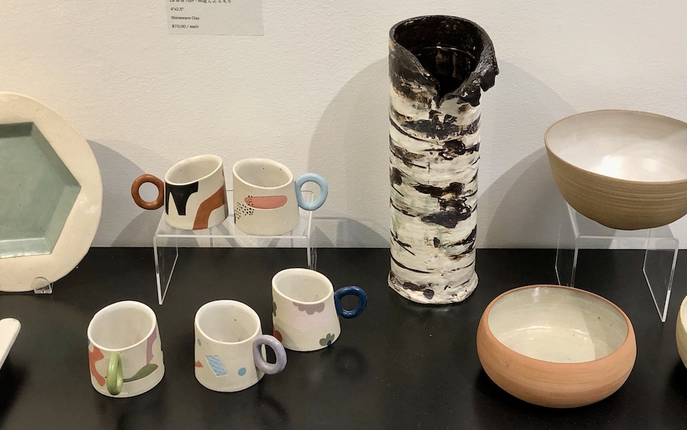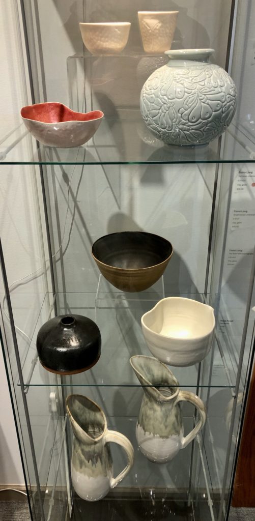 Busy ceramics technician Ysabella Choung was rushing through the gallery after checking on ongoing childrens’ classes downstairs in the clay department. She’s very pleased with the Centre’s teachers and noted that classes are very popular with both adults and children. I included a photo of her with some of her work in the previous blog.