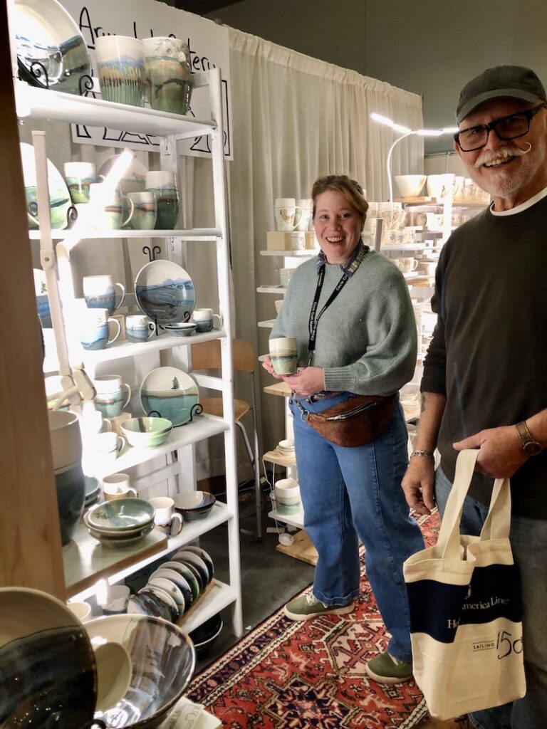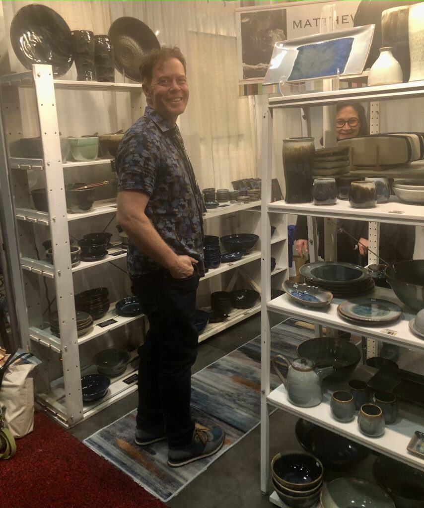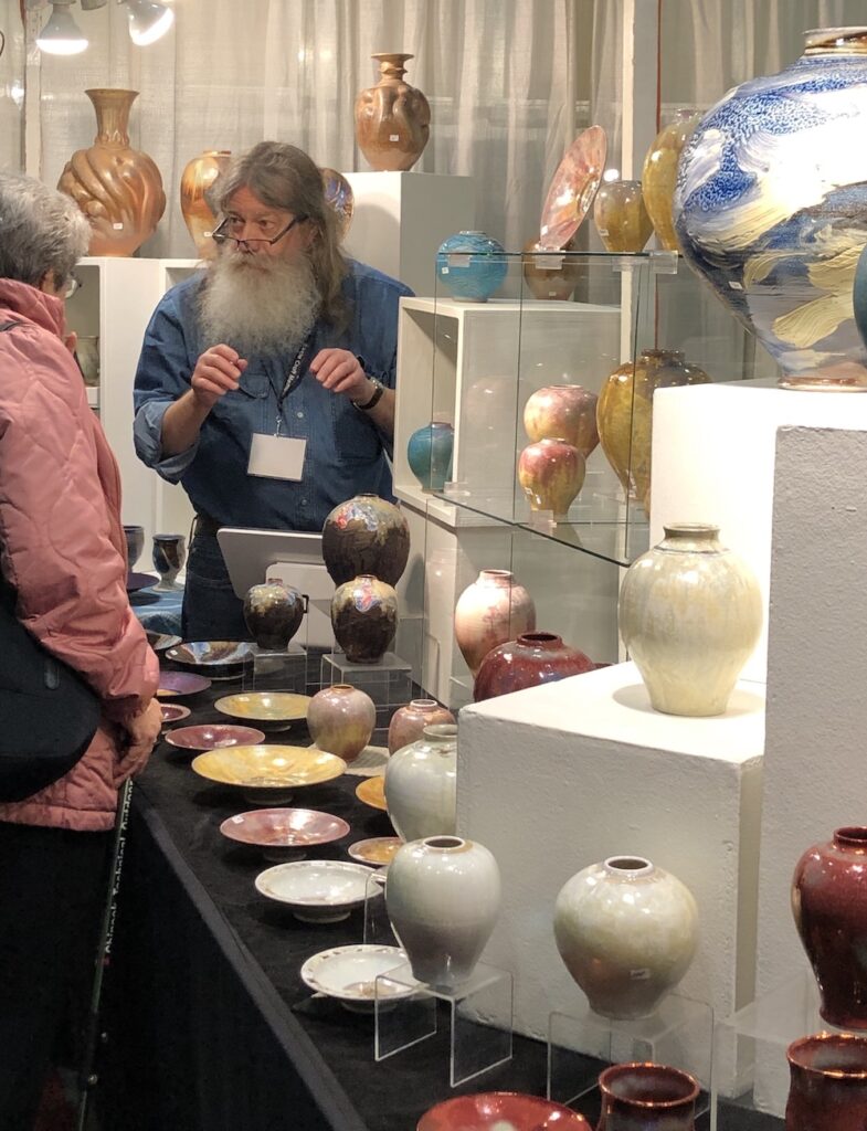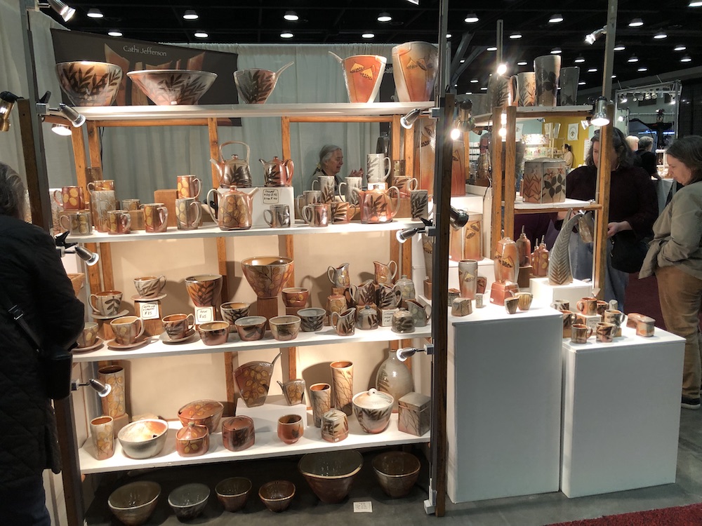 Cathi Jefferson’s booth was mind-boggling. When does she find the time to make, decorate and salt/soda-fire so many elegant pieces? I’m so impressed by all the artists who prepare for this six-day event each year and who then spend time with all of us. But I do enjoy the chance to spend a little time with potters I’ve known forever and see their latest work.