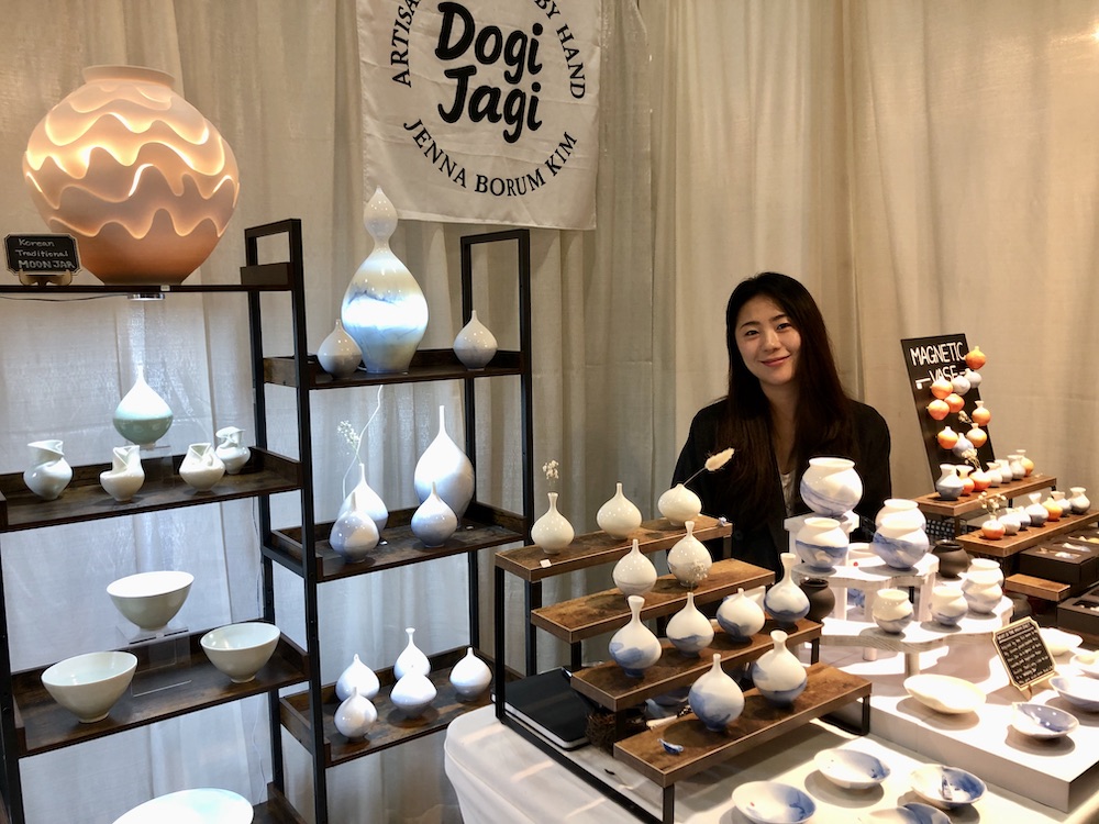 Jenna does amazing work in Porcelain. She basis her work on Moon Jars as she is of Korean heritage. She has incredibly translucent pieces in Polar Ice porcelain. They are so thin and pierced to a degree it is difficult to imagine them surviving the kiln. As a relatively new potter she is amazing.