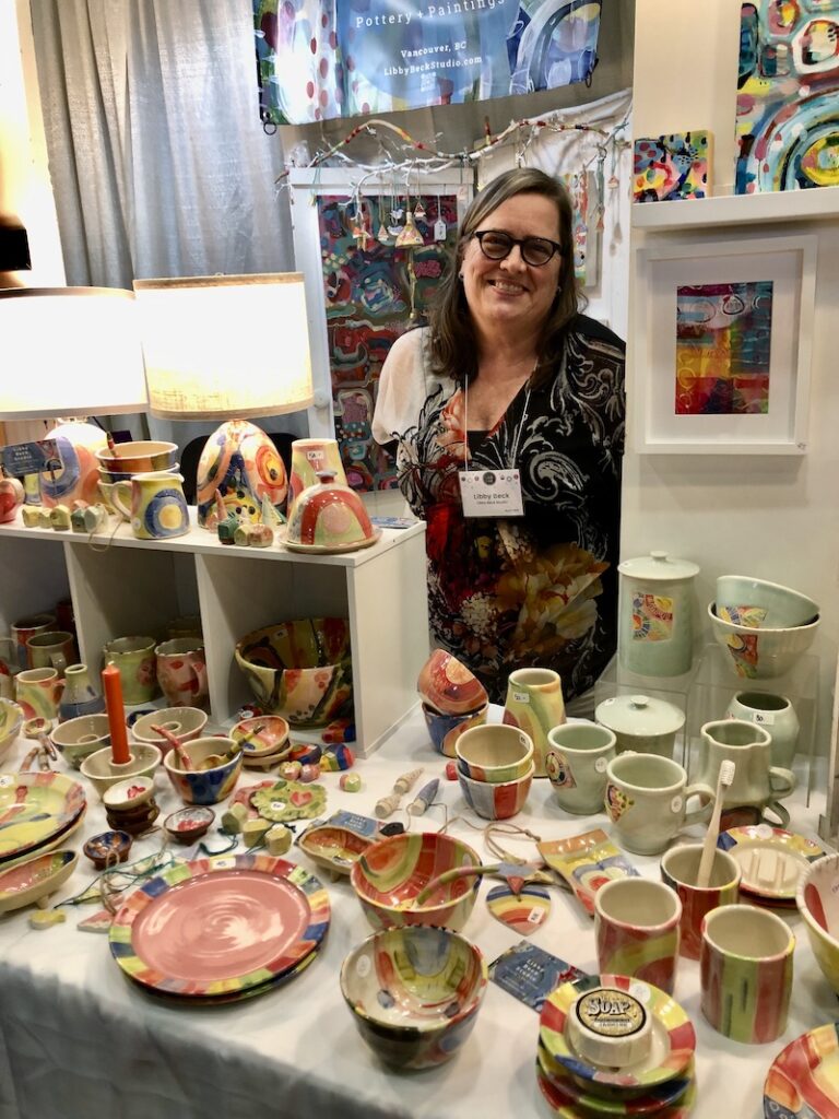 I found Denman Island’s Gordon Hutchens demonstrating on the wheel. Later we had a good conversation about the clay community and concerns about the future of ceramics education here in BC. As always his booth was filled with a variety of his splendid pieces.