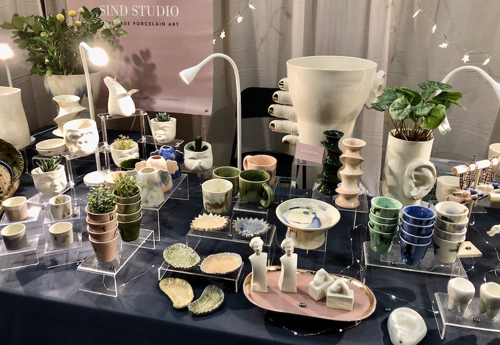 This year’s Circle Craft Christmas Market is over. I attended this fabulous event on Wednesday afternoon with the intention of finding all the ceramics people and posting my photos. It was so good to connect with longtime clay friends and meet the new folks, but I’m sorry I failed to get information out there before the show ended so that you could be inspired to check out all their work. Life interferes! But perhaps you’ll see some displays that appeal to you and you can go to the potter’s website. Under each photo you’ll see a name.