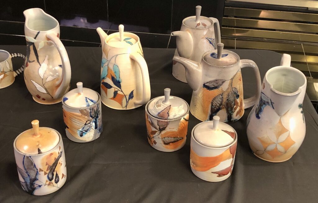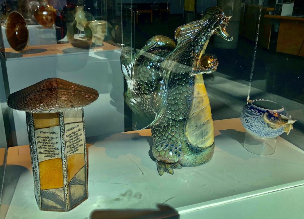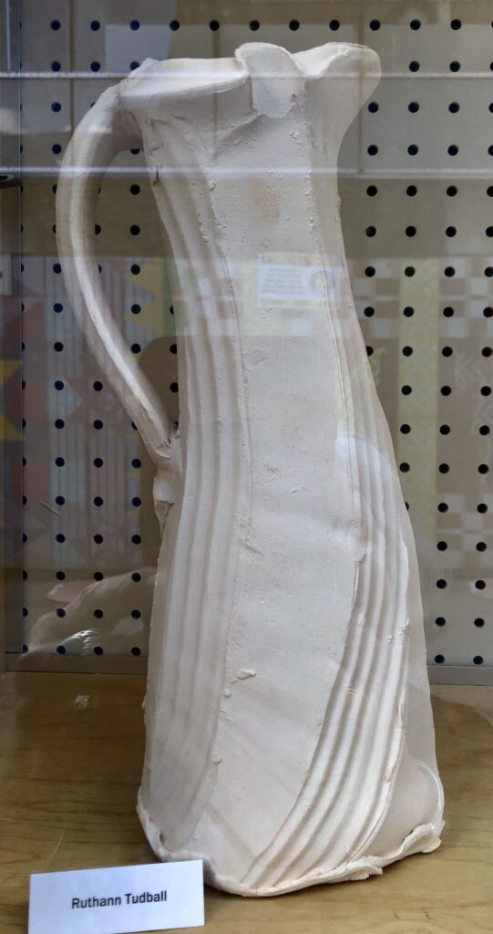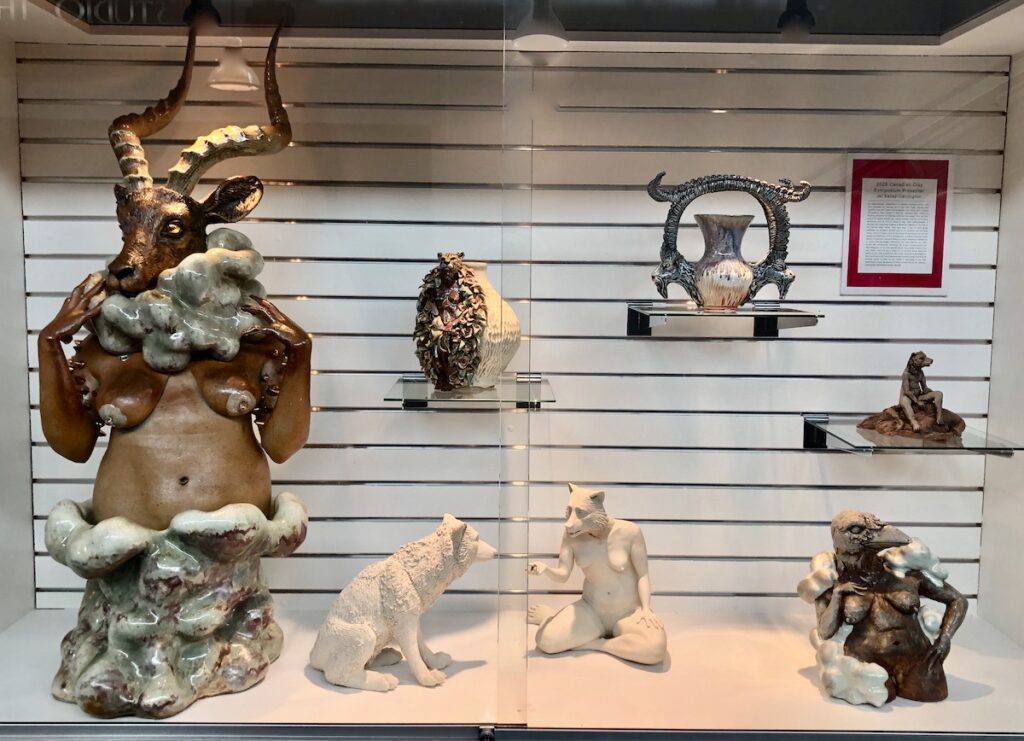 Thank you Linda and Sharon for your enthusiastic help to us, Shadbolt’s workshop and class attendees over the years. Below are my poor photos of some of their work, displayed at the Centre for us to see the next day. Here also are Robin and Eden Dupont who fervently asked for our assistance in the ongoing saga of saving the famed Ceramic programme which was the Kootenay School of the Arts. Selkirk College has announced its closure but there is hope for saving it..