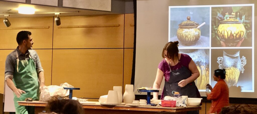 Before his talk we were warmly welcomed by a local First Nations singer and drummer, and then by ECU Ceramics prof Brendan Tang. People we have lost since the last Symposium were remembered, and two longtime Shadbolt Centre employees were specially honoured. Sharon Reay and Linda Doherty published their thanks in the following BC Potters Guild newsletter.